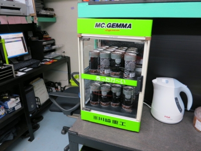 当店にはカン販売機も無く、コンビニまで歩いている姿を不憫に思っていただけたのか、ウオーマーを頂きました。しかも、ロゴもカッティングマシンで作って戴いてます。