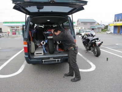 シャイなあん畜生的な笑顔ですね^^ ZZRからZZRへ。 時代の進化、キャブからインジェクションと進歩を満喫されてください。 いつものコースは面白かったですよ 気温が低い時も同じですが、体と同じで温めてあげないと性能は発揮できません。 アソコと同じで、皮も向いてあげないと、気持ちよくなりません 最高の女とお別れのようなワンシーンです。 新しい乗り手も、きっとクールなあん畜生だと思います。 新しい恋人を、いつも暖めてガンガン行っちゃってください。 松江ナイトまた 詳しい内容は、店頭にてご案内しております。 今、一押しの180/60-17ロッソコルサです。 16.5インチのレギュレーションアウトから開発されたサイズだそうですが、私のお勧めする理由も似ています。 タイヤサイズによる車高確保が出来るようになると、タイヤも車体チューニングの一端を担います。 一長一短には行かないと思いますが、今後お客様の協力の下、色々な車種で試して行きたいと思います。 画像ですと、分かりにくいでしょうが参考までに ロッソコルサはサイドウオールにコルサと赤でマーキングが有ります。 チョッといいでしょ^^ ニンジャにも当然テストします。ドナーの水回りは治ったのでしょうか 皆さんがお待ちです。早くご来店ください。ね、松◎店長 本日より、店から入江大橋渡って左側のホットブルースカフェが新装開店します。今から、覗いてきます 詳細は明日また。 0 コメント : コメントを書く :