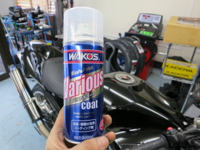 帰ってからは納車準備で綺麗に磨きます。当店では、ワコーズのバリアスコートで下地を作り、通常はプレクサスを用いてボディーのメンテを行っています。