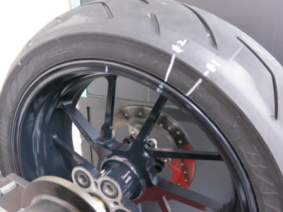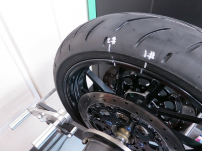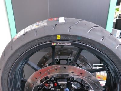 1400にS20を履かせました。ZX14RやCBR1000の今年のモデルに採用になっています。ハイグリップで、ロングライフと謳っていますが、確かにグリップは良さそうな柔らかい感触です。ライフが心配になるくらいの感触ですが...