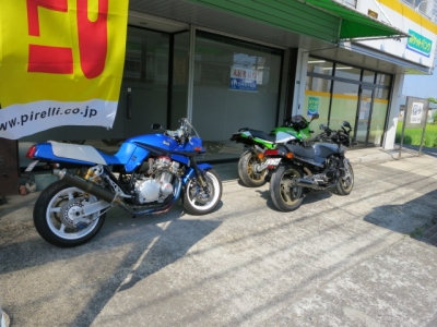 姉妹店付近のビックリラーメンを姉妹店主に奢って貰いました。 恋乞いでしたので、この後恋が来るのでしょうか^^ 大分から、出店してきた和ラーメンというお店でした。 US仕様のスペシャルエディションです。 フレアーライン、同色のフィン、タンクパッド、メッツェラーM5が標準装備です。 現車を見ると・・・・ こちらの車両は、パワーコマンダーV標準装備で、定価設定していますので・・・ 後は、シフターとステップとマフラーで・・・ もし、研二君が乗ったらなんて叫ぶのでしょうか。 イっけ~、俺の14ですかね シートカウルもメラメラで、気分はガドソンですね。 若い方は、ご存じないかもしれませんが、Z2の出てくる青春バイク爆走漫画です。 オッチャンが丹下タンペイ風味の面白い漫画です。 興味のある方は、漫画喫茶へGO” J物語やシャコタンブギの作者でもあります。 で、キングの刀です。 1135仕様でヨシムラタンクも載ってます。これから、リフレッシュ作業に入ります。 今は、スパナを水切りに持ち替えられてるそうです。 そちらも拘って作ってらっしゃるのでしょうから、一度伺ってみたいですね タンクキャップとエアブリーダーが雰囲気を醸し出していますね。 多分ビーターさんの製品だと思いますが、微妙なラインが女性を創造させます。 私をしっかり抱いてって、言ってるようで・ こうして並べると、絵になりますね。 緑のアイツがポジション占領したので、日向ぼっこです。 刀に倒立フォークも似合いますが、ニンジャも負けず劣らずマッチします。 過去のデータプラス、現在のグリップ力を加味して”サイコ~”の味付けを行います。 なぜ、1400が映ってるのかというと・・・・ 企業秘密も若干有りますので、またまたお知らせします。 では、今週も走りを奏でましょう