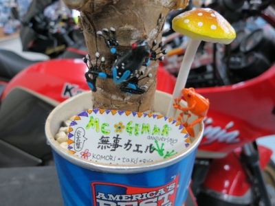 無事フロッグ。 無事ブログ。 店主の願いがこもってます。 因みに画像はリサちゃんメードの無事フロッグです。 広島市内のスペックエンジ二アリングさんのご協力で、かなり綺麗に仕上がってきてます。 純正スイングアームやホイル等の加工で有名ですが、安心してお任せ出来るショップさんです。