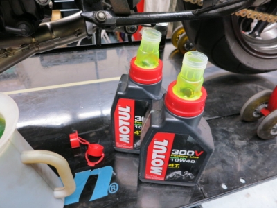 完全にバスクリン色です。 ダブルエステル採用の、二輪専用低摩擦ベースオイル使用の信頼の置けるオイルです。 チューンの進行具合や気温等で、粘度は変えていきます。 定番の300Vですが、度々改良されています。オイルについてのご相談も、ご遠慮なくどうぞ。 楽しみですね^^ こちらでは、内職をシコシコ行います。巷で欠品中のあの商品も、当店には在庫あります