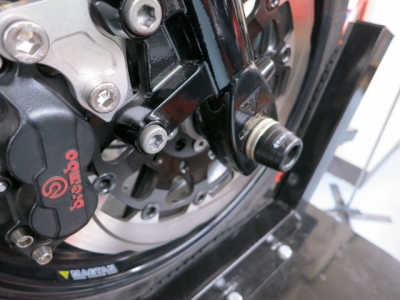 粟〇様、早く来ないと皮むきを超えて、タイヤが減ります^^ 前例があって、前例の車両は入庫しています。バイクに乗るのが、店主は好きなので、仕事で乗れるとイヒヒです。 ご都合よい日まで、タイヤは温存しておきます 店舗に来られる方のベンチマークになってます。今後も、大人な忍者で進めていきましょう^^。 パーツチョイスから、人生相談まで、何でもお任せ下さい。あ、説法は出来ません BITO R&Dのクロモリ中空シャフトが装着されていましたので、加工してZRX用を取り付けました。 フォーク下部は転倒時によく当たりますので、効果的だと思います。 アルミ製なので軽く、チェーンはステンレスなので拳骨サイズで250Kgの巻上げが出来ます。トロリーは500Kgの許容がありますので、ハーレーもOK。 遊びすぎて、縄で縛られ、吊られないように仕事頑張ります。 京都から来たそうで、ノリの良い元気な女の子たちでした。見てる方で、知ってる方がいらっしゃいますか? 写真を届けるツーリングとか出来たら面白いですね 大阪ツーリングもしないとイケマセンね、関係各位 これからも、楽しい情報や、新しい情報等いろいろ発信していきます。たまにトンチンカンも有りましょうが、温かい目で見守ってく下さい。 では、また明日。