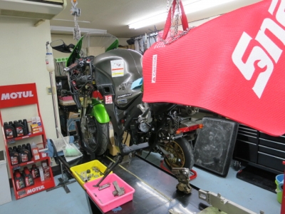 ホイルは、思ったより綺麗でした。なぞの生物は発見されませんでした。 これからも、この調子で可愛がってあげてください。 使用するグリスやケミカルにも拘って作業しています。 最新の情報を工具屋さんや、プラント関係のケミカル屋さんから仕入れています。 ここは、仕方ありませんね^^。 よく走られる方は、特にチェーン側のお手入れを入念に。オイルに砂や砂利等が絡み、チェーンの寿命をちじめます。 普段、外すことの無い部分なので、腐食しています。多分、塩カリにやられてます。 スイングアームはストックがありますので、交換します。冬場は少し、気にしてみてください。 リヤサスの交換もありますので、かなり動きが良くなると思います。 辛口の方だと、正常になるだけと・・・^^。私は、楽しみに待ってて下さいとお伝えします。これで、首都高もグールグル@
