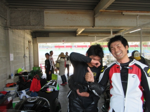 NSレーシングの中村さん、アドバイス有り難うございました<m(__)m> 次戦は8/14 クルーも足りていませんし、手探りでやってます(?_?) 色々なチームの先輩方から教わりながら (いつも教えて戴き、有り難うございます<m(__)m>) 楽しくやって行きたいですね^^ プロレーシングチームではありませんし、 そんなスキルも私は持ち合わせていません。 ライダーが{イッたるで~^^} そんな気持ちを、一生懸命応援させていただきます。 一緒に楽しみたい、ライダーいらっしゃったら 是非ご一緒しましょう^^ バリバリマ〇ン世代の方には マジカルレーシング蛭田社長のガンマなんて 夢のマシーンですね^^ 先輩チームやショップの皆さんは 気さくな方ばかり。 ガンマ乗りの血が騒いでいた、金〇さんの笑顔です^^ この三つ巴のヒートを 予選結果で楽しみにしていたのですが・・・・(^^ゞ 次のおたのしみですね!(^^)! カドヤの革ジャンは Kファクトリーさんのライダー アシダさん。マジカルさんや アトミック伊藤さんのサポート中でした^^ 5/8 TOT頑張って下さい!(^^)! H2のブローオフサウンドはキュンですが ライディングは豪快豪傑 見てるだけで、ワクワクします^^ ガレージ414 光元社長のH2 マイスタークラスで、JSBクラスのSSを抑え 見事2位入賞 おめでとうございます!(^^)! 電気的なトラブルにてリタイヤされた スピードテック レーシングの上田社長(>_<) ニンジャらしからぬ走りで 30秒台ニンジャに、釘づけになったお客様もいました^^ 私もニンジャの事、色々教えていただいています<m(__)m> 次戦での熱い走りを期待しております!(^^)! 池〇さんの息子で木〇さんの親戚(*^^)v 木〇君に参考画像のプレゼントです。 アトミック伊藤社長のトップシークレットを コッソリ盗撮してまいりました^^ (ホントは、ちゃんとお願いしました(^^ゞ) 帰ってきたら、ミーティングですね^^ スピード違反のお二人様 ポディウムの前で、待てど暮らせど いらっしゃいません。呼びにいくと 赤切符は切られていませんが ハイ、アッチとパドック差されたそうです(>_<) 記念撮影です。 出場クラスが増えますので、アドバイザー夫婦や某社長に 軽く打診はしております。 しかし・・・ 猫の手も借りたいくらいの事態(+o+)も想像されますので お手伝いいただける方は大募集です。 NKクラスも8月は開催されますので 応援、お手伝い、ビキニの傘持ち^^ギャル 宜しくお願い致します。 美女の隣の、ラッコ2匹は確保済み^^ 誰でしょうね~^^ 明日は、TOHOレーシングさんの走行会です。 TSタカタサーキットにて開催です。 雨天でも参加しておりますので 晴れオトコな皆さん 御参加お待ちしております。 0 コメント : コメントを書く :