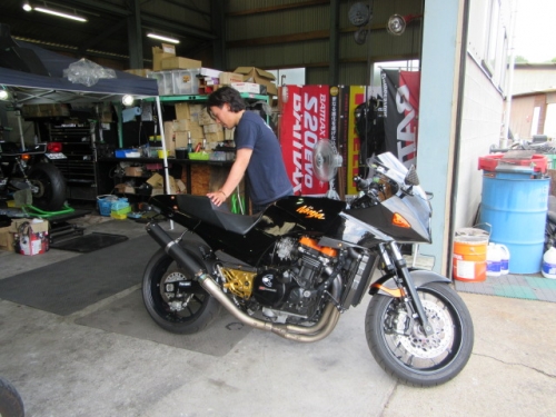 業務に更新ガンバリマス2016-06-27 at 15:04PM by 店長更新が遅いとお叱りを受けております。 申し訳ございません、猫の手を借りてまいります!(^^)! ヤングなニンジャ乗りが増殖中 神明テリトリーの真〇さん。 この夏は、スタンプラリー^^の予定です。 ストリートNINJAに必要な 安心、安全、独自性(^^) 走るニンジャの基本を押さえて、お渡ししています。 現状に慣れて来たら、誘惑します♡ 店長命名、切らない〇〇ケー手術コンセプト^^ 先ずはご堪能下さい。 車検整備時は、油脂類総交換を原則に 駆動系点検、給油、消耗品交換と多岐に渡り 分解整備しております。もう充分、旧車の域の NINJAですから 早めハヤメの交換が、不具合を未然に防止します。 最近では、電装トラブルが増加傾向です。 炎天下でのトラブルは、避けたい貴殿からの ご相談、お待ちしております(*^_^*) タッチの変化だったり、汚れで判断しますが アクティブさんのグリーンやレッドのDOT4 を用いて、お客様自身で把握できるように 視覚アピールさせて戴く事も有ります。 特に見落とされがち(+o+) コーラ色のフルードの方、大至急交換して下さい。 久しぶりのカラット DRAG^^ 最近DRAGと言う言葉が、TVを行き交っていますが コチラのDRAGは健全なスポーツマンのDRAG^^ いいおっさんが(誰ですかね^^) 継続は力なりと、ボチボチ走り続けて記録更新。 かっこいい男の背中、目の前で見れます。 次回は8/7 ジャパンDRAGとも言うべき JD/STER 第3戦が開催されます。 福山近郊のバイク関係SHOP、飲食店等にて ポスターを見られた方も多いと思います。 5秒台連発の14Rや隼、6秒切りのDRAGハーレーと 見どころ満載^^ アメリカでも優勝経験や好成績の CLASS 4エンジニアリング横田社長と 900ニンジャで頑張る藤〇さんが ベイファームまでショートツーリングの一コマです^^ ナンバー付きの公道走行車で5秒台^^ そんなモンスターマシンのクラスも、 NINJAクラスで楽しめるクラス分けが有るのも JD/STERの特徴です。 当店最多連続出場の木〇さん、藤〇さんが 出場されました。木○さんは念願の6秒突入 おめでとうございます^^ 藤〇さんは前画像でも記載いたしました CLASS 4エンジニアリングの横田社長から DRAGの基礎知識等のレクチャーを受け 次戦にキラ~ン^^なオ目目 体験走行では共に初参加の、ZZRの岡〇さん、ZX10Rの木○さん 揃って大ロデオをご披露。 開けっぷりの良い バカチンぶりを見て戴きました!(^^)! かく言う私も、 スタート練習のつもりで臨んだのですが ウオーマーのコンセント抜けていました^^ バーンアウトしないと、ノーマルエンジンだって 咬みません^^と言うお手本走行でした。 お恥ずかしいカギリデス(>_<) ベイファームにお出かけされましたので、 多分見られた方は、オヨヨ^^だったでしょうね。 3台ともとても速くて、参加者の目標^^ になったんじゃないかな\(~o~)/ 色々画策中のお二人さん。 ロードあんどDRAGコンビで 参加してみたら如何ですか? 8月は店長の部品取り10R!(^^)!伸ばして出動させますよ!! 三〇さんのニンジャも当然出場の咆哮で^^ あのパーン方向を咆哮させてください(^^ゞ 今週は稲妻ラッシュですが 私こなして参りますので、ご声援ご愛顧 テント代!(^^)! 心からお待ちしております。毎回折れたり飛ぶのは 流石にキツイ^^ 上品なホスピタリティスペースの為 応援宜しくお願い致します!(^^)!m(__)m!(^^)! 0 コメント : コメントを書く :