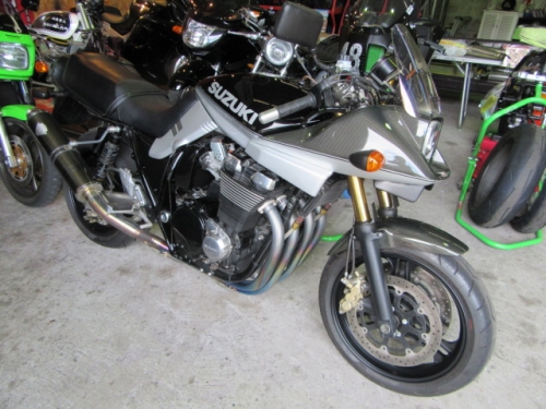 夏はアツい(+o+)でも旅は楽しい!(^^)!2016-08-08 at 15:51PM by 店長暑い日が続きます(+o+) 水分、塩分、亜鉛、アルギニン♡で 灼熱ファクトリーで戦っております^^ 8耐帰りの、ナックヘイズの中島さんとお友達さん^^ 毎年恒例ですね。 来年は夏旅に出たいな~!(^^)! 10数年前のホイルですが、結構軽いんですね。 白黒難しいストリートです。 楽しく速く、だけど自分が楽しい速度、走り方が 一番ですね^^相対的な事柄は 無理しちゃいけませんよ^^ 最初で最後のZ系コンプリート Z1-R^^ 長い時間と、試行錯誤を重ねて 間もなく疾走です。 ノーマルルック基準で 信頼のおけるメーターやディスプレイに交換です。 パネルカスタムは大変ですが お客様の嬉しそうな笑顔で、報われます^^ スタック スピードメーター/タコメーター ヨシムラ モデルKテンプメーター GI-PRO インジケーターを ワンオフリングにて取り付けています。 CRキャブレター装着です。 試運転しましたが、コレコレ的な加速感^^ 加速ポンプに頼らない 空冷の、味のある加速感です。これはお勧めですね^^ チャプチャプ言いませんし^^ マフラーも角度、取り付け位置共に 変更しておりますので 外に向いてませんよー^^ Kファクトリー製の高剛性なスプロケットカバーと レリーズキット ゲイルスピード 17.5パイVRCマスターで タッチも切れも、そして重量感も軽減しています。 プレートの剛性 コレ重要ですよ^^ Z系や旧車系車両は、一般修理やパーツチョイスのお手伝い等 に限ってお引き受けいたします。コンプリート製作は 私の得意なニンジャが、多数控えておりますので お引き受けできませんm(__)m ユニコーンさん製作の1400カタナ 新車コンプリートからの2オーナー車有ります。 ダイノジェット パワーコマンダーとクイックシフター装備 ラボランテ 17インチ ゲイルスピード B/Cマスター ハイパープロ ストリートBOXキット装着 安心してワイドオープン^^ ポジション改善のシートカスタムも お引き受けいたします。 詳しくは、店長までお尋ねくださいm(__)m 極上ピカピカです^^ ダエグの生産中止で 上質な1200中古車の、価格上昇中です。 誰が乗ってたか、分からない ブラック中古車にしますか、顔の分かるオーナーさんからの 上質車にしますか?^^ 今週末のモトレボまで 店休日も返上して営業しております。 ご来店、お待ちしております^^ 0 コメント : コメントを書く :