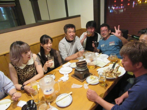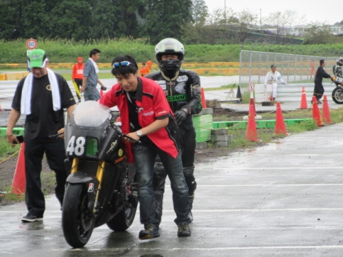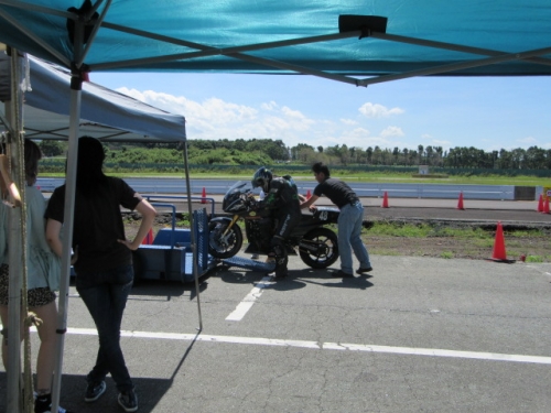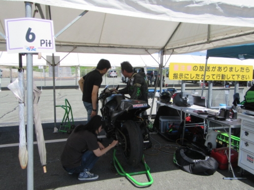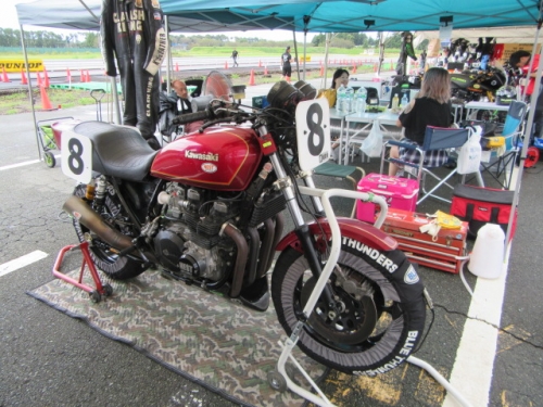 ビビリミッターON2016-09-19 at 21:02PM by 店長鉄フレーム・4気筒の夏祭り そんなキャッチフレーズの 鉄馬 アイアンホースドリームカップ アイアンスポーツクラスに 参戦してまいりました。 台風接近で、開催が危ぶまれる中 快晴の前日走行枠^^ 気合を入れて、走ります。お、いい感じジャン^^と ベストラップ更新中に高速コーナーでビよ~ンと転倒(*_*) 飛距離が足りないと、某氏より指摘をうけました^^ ラジエター保護に、長さを自分で伸ばしたスライダーを装着 長すぎて、バンク中に引っかかってぶっ飛び 本末転倒な事態に笑うしか有りませんでした(>_<) 良かったのか悪かったのか 分かりませんが結果オーライな結果。 幸い体も怪我無く、復旧にかかりました。 遠方でのトラブルで、一番困るのが部品調達(?_?) 大体の補修部品は持参していましたが 今回はクラッチマスターのタンク破損(T_T) ’あ、持ってきてない(+o+)’ 7月の鉄馬走行会からお世話になっている 単車工房 モトジャンキー 代表 中尾さんの尽力により無事調達出来ました<m(__)m> 切削加工の必要な部品も RSCさんにて加工して頂き、ゾンビニンジャ復活しました^^ 刈って来たグリーンは、マネージャー大戸夫妻が 綺麗にしてくれました!(^^)!いつも有り難うございます♡ MG-NESTさん製作のJで出場の大山さん号 住んでる場所を超えた、熱いバイク野郎の合同チームで 臨みます^^ TOTでも有名な、森の妖精(^^)も 勿論同行です。仲良しペアレンツですね^^ 応援してくれる良い仲間達ですm(__)m いけー○○な声援と あちゃーな罵声と^^ 仲間の応援は励みになります。 雨の日は、コンチ逆履きを広めるそうです。 B組トップから格上げ申請でA組へ。 カッコいいですね^^ ドライタイヤで24秒 私負けております、レインなのに(+o+) ダブルライトが眩しい打ち上げです。 モトジャンキーさんのお客様の経営される 鳥料理のとても美味しいお店です。 店名を聞きそびれましたので、またご紹介いたします。 モトジャンキーの吉松さん。 宴の席でもモンスター使いなんですね♡ おめでとうございます!(^^)! アイアンスポーツクラス入賞の XJRに乗る宮〇さん(巨人^^)とモトジャンキー中尾さん。 中で行事するのが私のマネージャー 大戸君です。 メカはウフフなんですが、経験から語る マネジメント能力は一流です。タイムアップ請負人^^の 異名を持っています!(^^)! 6気筒CBX1000にて モンスター18クラスにご出場。御年ゴニョゴニョの 大先輩ですが、走りもピカイチ^^ 日本海サーキット(チャイナハイウェイ^^)を疾走される ツーリングライダーでもあります。 いつか、ご一緒したいですね^^ ぶっ飛びに始まり、ブービー(T_T)で終わった 鉄馬初参戦でしたが 主催者始め、沢山の方に支えられて無事に帰ってまいりました。 関わられて下さった、皆さんに 大変感謝いたしております。参加者も応援見学者も みんなが楽しめるイベントでした。次回は酒屋のあの人や、 当店のニンジャ乗りの方をお誘いして、ご一緒に参加したいと思います。 掲載できなかった画像も多数ありますので、 お土産話をお聞きに ご来店下さい^^新しい商品や、新製品情報も 色々聞いて参りましたよ^^ 0 コメント : コメントを書く :