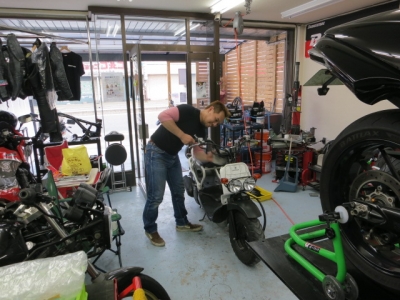 足回りから始めます。 週末のイベント用の足として、まずはドカチー池田が整備中です。 出来れば、ジェンマカラーで仕上げたいのですが、塗装の得意な方イラッシャイマスカ^^ お客様ともライジング談義をしたり、パーツチョイスのお手伝いをしていたりと大活躍中です。 いずれドカチーにもカメラがセット出来るようにします。 鈴鹿には、美味しいオムライスを戴けるTポイントというお店があります。 美味しくて、大きいオムライスが食べれるので、今年の8耐ツアー参加者は一緒に行きましょう。 8ちょぼ級です。 上に、少し映ってるのが普通のサイズです。 挑戦者いますか? いつでもお連れしますよ^^ 姉妹店主は300Vの15w50を入れましたので、私はシルコリンの15w50を入れました。 同じ車種で比べると、色々な違いが分かります。シフトタッチや静粛性など色々報告いたします。 後は、リアタイヤをグリップするであろうタイヤに交換して臨みます。 さてさて、どうなることやら ローダウンと相まって、ドラッガーイメージが高まってるでしょ 姉妹店主の手によるテールパイプからの音は・・・・・ 会場にはブースを出展いたしております。 お取扱い業者様の商品展示も合わせて行いますので、ご来場心からお待ちいたしております。 それでは、また 0 コメント : コメントを書く :