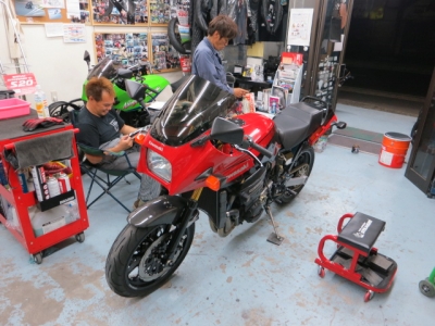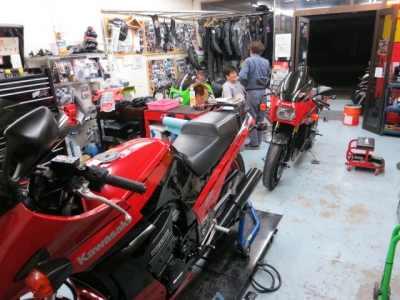 週の頭には、こんなサイレンサーを制作する姉妹店主が、業務打ち合わせの為来店です。 現在、制作中の車両の確認やニンジャをニンジャしたり、忍法を使ったり・・・・^^ お預かりしている、吉○様のダエグについての打ち合わせもいたしました。 第一弾から、お楽しみに^^イイとこ、行きすぎないで…♡ 画像じゃ伝わらないかも知れませんが、完全にフードファイトです^^。 味も良いので、女性に大人気のレストランです。 ドカチーはイタリアンと、私のオロシ明太の半分を食べてました^^ 野菜も食べて、青虫は綺麗な蝶に成れるでしょうか 今回は、ワンオフステム交換とブレンボマスター導入です。 マスターはレーシング削り出しの一品です。オフセットにも拘ってます。完成をお楽しみに・・・・ コイルは後方に移動して、メンテナンス性の向上を図っています。ヘッドの位置も高くなっていますので、この変更によりプラグ交換が容易に行えます。 ASウオタニさんのSP2を装着しておりますので、コイルも同社製です。 マーキングにより、気筒を間違わないようにチェックしています。少し物忘れな年頃なので・・・・ 増設した電子機器の配線が、乱雑にならないようにこころがけています。 マイクロタップに依る電源等の取り出しは行いません。トラブルの元は防止しましょう。 JBカヤバのフォークで、セパハン仕様ですが、延長は必要有りませんでした。 オフセットがわかる方、いらしゃいますか? 正解者には・・・ フルチューンもフルノーマルも、ニンジャで頑張ってます。手前は程度の大変良好なA10です。 間もなく整備完了で、中古車デビューします。奥のA12も売りますよ。売ると思いますよ、多分売ると思いますよ・・・^^ 年式よりも、走行よりも程度重視で探して下さい。夢の相棒探し、お手伝いさせて頂きます。因みにライムA12はアンダー1万キロの極々です。 さ、明日は週末です。も少し、頑張りましょう