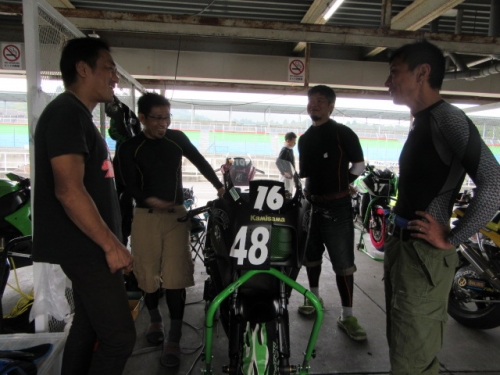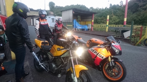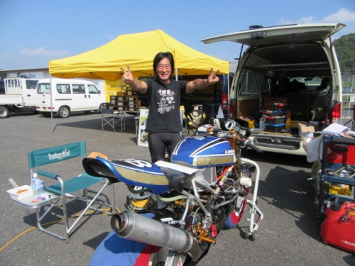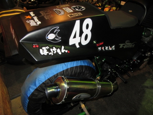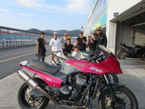 先日のウェンズデーカップカップで ガッツリはまったピンク軍団ボスの藤〇さん^^ 足回りの不満点を解決すべく 日々残業に勤しんでるようです^^ エンジンパワーは評価いただいておりますので(*^^)v 足回りの勉強中の私と共に 理想を追求していきましょう^^岡山国際サーキットしか 近隣での走行会ありませんので 若干敷居が高く感じるかもしれませんが、 公道で、スキルアップを求めた走りをするのは リスクが多いので、走行会などでチャレンジするのが ベストだと思います。特にハイパーニンジャな皆様は 一発廃車のリスクが伴いますので(^_^;) 今後も、ご案内を掲示して参りますので 興味のある方は、ご相談ください!(^^)! ハイパープロ BDタゴスさん仕様です。 装着から数年が経過し、OH時期の車両も多くなって来ました。 通常のOHから一歩足を踏み入れ FFOS ファクトリーフラットアウトさんで リバルビングを含めたチューニングをお勧めしています。 今回、プレ2018仕様ということで 920デモ車装着以来、 色々ご相談させて戴いた理想のハイパープロ これから伸びてく、ビギナーにも乗り易いサス こちらを観点に、走行会まで見据えた 欲張り仕様なハイパープロ完成しました。 リミッターが効いたまま ニコニコ走れる出〇さん仕様を、更にしなやかモードで 製作していただきました♡ 右コーナー、怖くなくなったらイイですね^^ ピンク軍団とあの仏壇なお方は、 二人に続けて、こちらの使用でモデファイ予定です^^ 当店セパハンカウルを製作していただいてる きの屋んカンパニーさんより セパハンニンジャレース用カウルの デモ品お預かりしました。最高速の観点から 前方をスラントさせ、鼻下に12R風のダクトを開発中との事。 当店レーサーの様に、オイルクーラーがカウル内の車両にも 独自の発想で冷却する方法を、構想中だそうです。 スラント部分が広いので ストリート向けに他車純正の 高品質なLEDヘッドライトも組み込めそうですよ^^ サイドのカットは当店同様の ブリッジ下セパハン対応です。興味のありそうな方 何名かにはご案内いたしましたが、ローガンズにも良いかも^^ 宣伝させて戴くお店は どこも大人気店^^いつもお客様の多い 美味しいお店ばかりです。 まずは、津山の炙家 ぼっけもん さん^^ 岡山県津山市伏見町28-1 営業時間PM1800~2200 0868-23-2994 なかなか予約の取れない大人気店ですが デーブ松〇くんのご紹介で伺いました。 言葉に出来ない、美味しさなので 取りにくいのですが、頑張って予約してみてください。 出されるお肉、料理には笑顔しか出ません^^ つづいて 福山のおいしいたこ焼き屋さん かくれんぼ さん。 福山市野上町1-5-2 営業時間 AM1000~PM1900 084-944-3664 焼き立てに拘り、作り置きはしていませんので すぐに食べたい方は、電話で注文してから 伺った方がいいかもです。 食レポ出来る程、グルメじゃないので こちらも論より証拠で伺ってみてください。 アツアツとろとろの、絶品たこやきが 笑顔を誘います。おすすめは、シンプルな塩だれです^^ 是非、ご賞味下さい。 お店の宣伝も出来る(速くないので^^)レーサーは 大阪Mさんお気に入りの ディアブロレーシング サイレンサー 真楕円大 ¥58000(税別) を装着して、ショートタンクからのシートに繋がる デザインに合わせて、サイレンサーを短くしてみました。 53.5パイインナーですが、消音効果が高いので いい感じの音量です^^ ご家族揃って、ウェンズデーカップに応援に来て戴いた 福山市 新市の アトリエ さんのステッカーが貼ってます。 福山市新市町戸手166-1 営業時間AM800~PM2100 0847-52-5850 美味しいランチや、ディナー、カフェタイムと 営業40年の老舗の味で 近隣の老若男女の舌を唸らせてきた、レストランです。 ピンクニンジャ3号の作る ケーキも絶品です^^ 是非、ご来店下さい。ハイパーモデファイも入るので フットワークも軽く、調理してるかな^^ 雨の休日、御暇つぶしになったでしょうか? お待ちになっている、お客様がいらっしゃるのに 開発用レーサーを走らせるのは 大変心苦しく思っております。色々なテストを行いつつ 少数で車両製作しておりますので 腹立たしい事も有るかもしれません。しかし、乗って楽しいバイクを作るのが 私の役目と自負しておりますので 笑って、お許しください 路面店のような、二輪販売店ではありませんので ショップの特徴をご理解いただければ幸いです。 パッときて、にこっと笑って帰って行くお客様の 笑顔で私、徹夜も苦になりません(*^^)v これから、大変忙しくなってまいりますが、頑張ってまいりますので 優しく♡優しく♡宜しくお願い致しますm(__)m ウェンズデーカップはニンジャ大運動会^^2017-10-11 at 21:55PM by 店長今日はニンジャ運動会と 呼べるほど、ニンジャの多いウェンズデーカップに 参加してきました。 先日のナックヘイズ☆スピードさんの 走行会に参加して 安全に、全開やフルブレーキングの楽しめる サーキット走行に目覚めた、藤〇さんピンク1号ニンジャ 