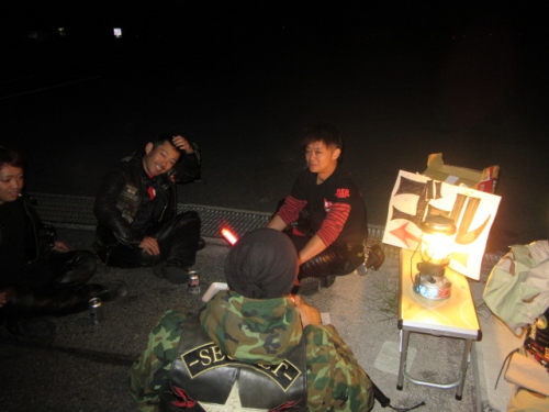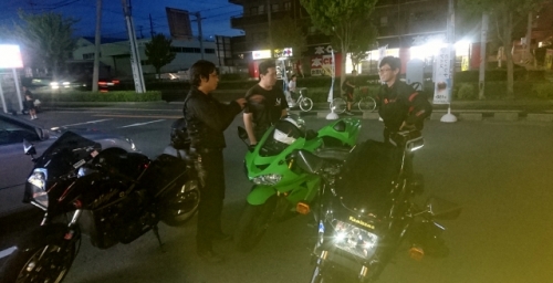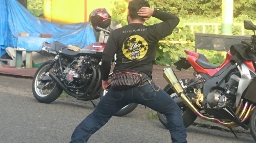ゴール地点では ”ナイトツーリング”に疲れたライダーを 赤いライトセーバーを振りながら まだか まだかと待ってますよ 宴会の始まりです 飲んで 食べて お喋りして 楽しんでま~す(^^) 綺麗な朝日です オジサマと若者 朝日に照らされる ご自分のninjaにうっとり(^^♪ 高速経由で1番に着いた人は ナベちゃん 下道で1番に着いた人は デコポンちゃん アイドル並の写真撮影会です ピッチピチのTシャツがポイントです 皆さん お疲れ様でした この後 グルメツーリングに行かれる方々 羨ましい~(^_^) また 次回も 楽しみにしてます ☆ジェンマからの参加者を募ってます ぜひ 一緒に行きましょう☆ 旅も峠もレースもニンジャ^^2017-09-19 at 12:39PM by 店長荒走りこと、鎌〇さんニンジャ ニンジャヘッドを大事にする、ニンジャ野郎です^^ ガンコートで外観も完全リフレッシュしています。 エンジンフィールは、超ツアラーニンジャが コンセプト。トルクの厚い、憎いヤツです♡ オーナーの使用状況に合わせた チューニング出来ます。ツーな方も ワイディングな方も、レースな方も御任せ下さい!(^^)!