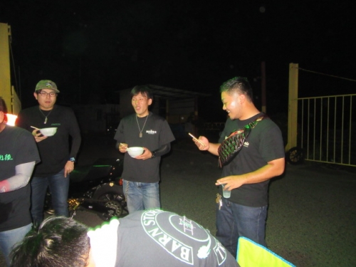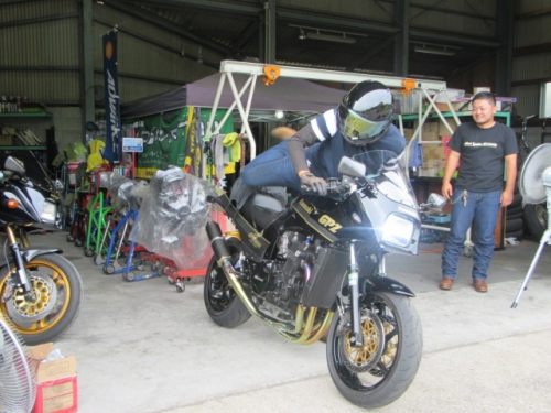 行ってらっしゃい\(~o~)/ 連休最終日、午後からNsレーシング中〇さんのセットアップに 同行して来ました^^ 17日IHDC 鉄馬中止になったので 今年初乗り、テスト走行も兼ねて行って参りました。 大したことない私のスキルで イケる気がしてきます^^少し整備不良が露呈しましたが それでも自己ベスト3秒更新^^ 全日本の昼休みには、もう少し練習が必要ですが ノーマル1100で頑張って、詰めれるだけ詰めて パワーモーター搭載します♡ 既にマイスタータイムなZのお友達と、来年出たいな^^ それを希望にガンバリマス^^ デーブ松〇君 彼も18インチ使いなので、デビューして欲しいですね^^ 来年・・・(^^) 発電機高そうですね^^10RRカッコいいですよね。 FBのレアの動画に、しびれるオッサンです^^ また、楽しい走行会お願いします。 今年皆さん、寂しくしてます 準備に大変そうでした。 関係者の皆様、お疲れ様です.ご盛況をお祈りいたします。 来年Bパドックに行けるように がんばってまいります\(~o~)/ 洗脳しています。 現在3.5台^^ ピンクボス藤〇さんと、出場ですね^^ 大型ライダーには、大型ニンジャも製作出来ますよ(^J^) では、週末キラキラにてお会いしましょう☆☆☆ 直入と丸星とニンジャミーティング2017-09-10 at 22:34PM by 店長9/9 ナックヘイズ☆スピードさんの SPA直入走行会に参加して参りました^^ ピンクニンジャ1号 藤〇さんの サーキットデビューのお手伝いと デモ車のチェックに!(^^)!行って来ました。 ライダーはそれなりなんで、タイムは(^_^;)ですが 足回りは流石の一言につきます(^^ゞ乗れば分かる、分かり易いサスチューンは FFOS高島さんの持ち味ですね!(^^)!有り難うございます。 ストリートでの良さは満喫していましたが、 サーキットでもウフフですよ^^ 実は、今年ニンジャ初走行なので 仕事を忘れ、楽しく走ってしましました(*^^)v カッコ良く仕上げてくれてるナックヘイズ 中島さんです。 3本目はコース案内(大人風味^^)戴き チリチリファイヤー、プレゼントしていただきました^^ ハーレーと、コース走ったのは初めてでしたので、 とても新鮮で楽しかったですよ^^ バックマーカー探しながら、追っかけましたけど(>_<) 来年は混走クラスも開催予定との事ですので 皆さんで楽しみましょう^^ 2本目からは開けるイメージで走ってました^^ 57秒ぐらいで周回されていましたので 来年は何秒目標にします?^^ ニンジャだと旅も楽しいですね。 広島から、応援に来て戴いたライム池〇さん。 来年は、参加の意思を頂いております^^ ホワイトサンダーさん、隊長、ヨコレーの皆さんも 是非ご参加下さい。 基山のミーティング立ち寄りコース。 途中、久留米ラーメン丸星によって、ラーメン食べました。 福山育ちの藤〇さんですが、久留米系大好きな様^^ 次回は地元のライダーの評判を聴きながら、セレクト致します。 毎日や時間で味や匂いが違う^^ これが、デフォルト店の基本ですね。長浜の元長も 同じですよね(^J^) デフォ店お連れしてから 美味しいと評判のお店にお連れするのが、私流 ラーメンおもてなしです^^ ニンジャナイトミーティングに参加してきました。 主催の黒忍 吉田さんとはお知り合いなのに 中々参加出来なくて、申し訳なく思っていましたが やっと参加出来ました。 走行したてのニンジャ2台も、展示させて頂き 跨って頂いてサスの味見^^をして戴いたり オッサンのセパハンコンセプトを 体感していただきました。シークレットプロジェクトに向け リサーチも含め色々なニンジャオーナーと お話しさせて頂いて、感謝です。 ステップワンニンジャ(#^.^#) 米〇さんともお話しさせて頂き 色々参考になりました。 調子の悪い、セットアップ不良のニンジャは 暴走族と間違えられますので^^ 行きつけのショップさんで、きっちりセットして頂いてください。 行きつけが無ければ、行きつけ作りましょうか?^^ 金曜日仕事終わりに走って、大分市内で仮眠^^ 今はトリバゴあるから、安く泊まれます。 で、土曜日夜中(日曜朝方^^)帰って来れます。 沢山集まれば、一人頭も安く済みますので 次回は軍団で行きましょう^^ 間にあいそうな気配(^_^;) 9/17(日)は今年初レース、初乗りと初物づくしの コケ太郎ニンジャ。走れたらラッキーレベルな バタバタ感満載ですが、諸々テストしたいので頑張ります。 熊本ツーリングがてら、冷やかしに来て頂けると 元気になります。レース前はビビってますので 笑いに来て下さい!(^^)! 同日箱根のニンジャミーティングに行かれる方は、 お土産話お願いします。被ってなけりゃな―(>_<) 去年楽しく出店させて戴いたので 大変残念ですが、盛況をお祈りしています。 では、諸々頑張ってまいります^^ 夜中の冷やかしは、眠気覚まし希望です♡ BBQ楽しかったですね^^2017-08-31 at 21:45PM by 店長ニコニコ笑顔のタロウさん^^ 試合の関係でBBQには参加出来ず(>_<) ニンジャ乗って、琵琶湖まで帰りました。 動画が可愛いと、人気でしたが 彼はハイスクールテーチャー^^いつか、職場体験に JK連れ
